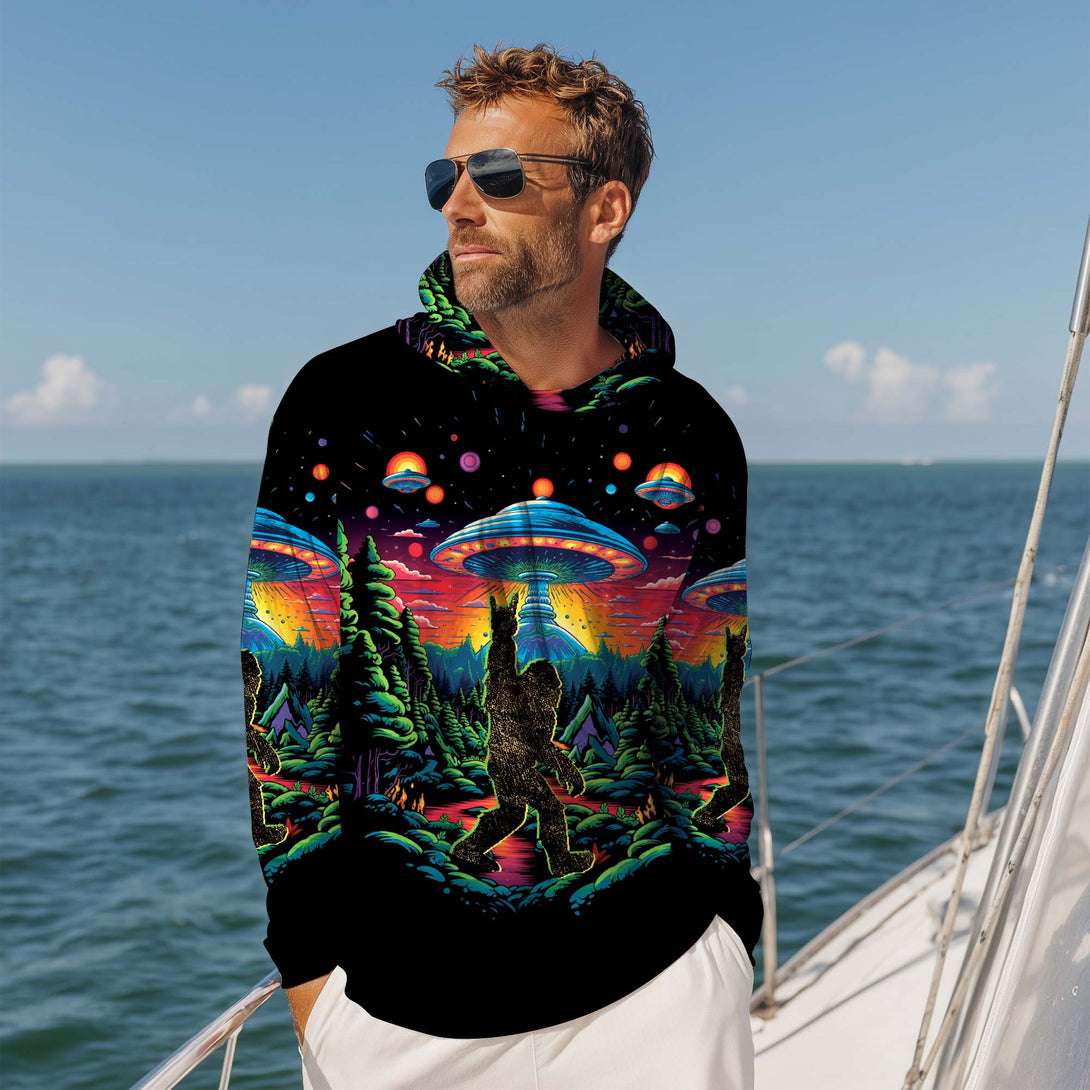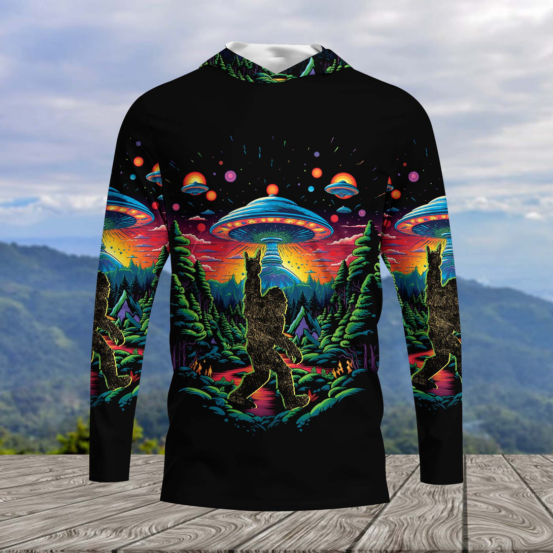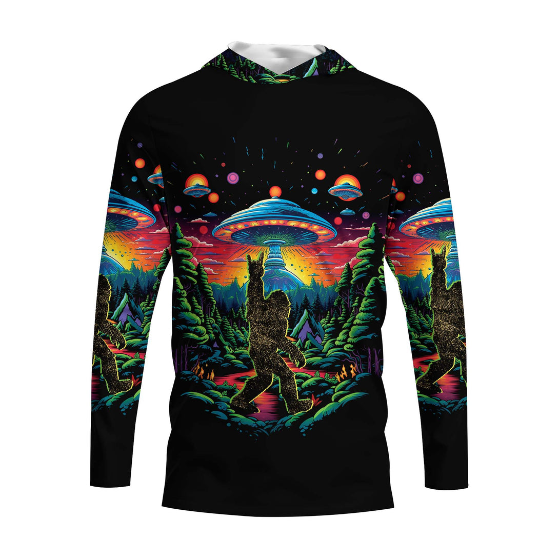 Bigfoot Alien Night Hooded Long Sleeve Shirt