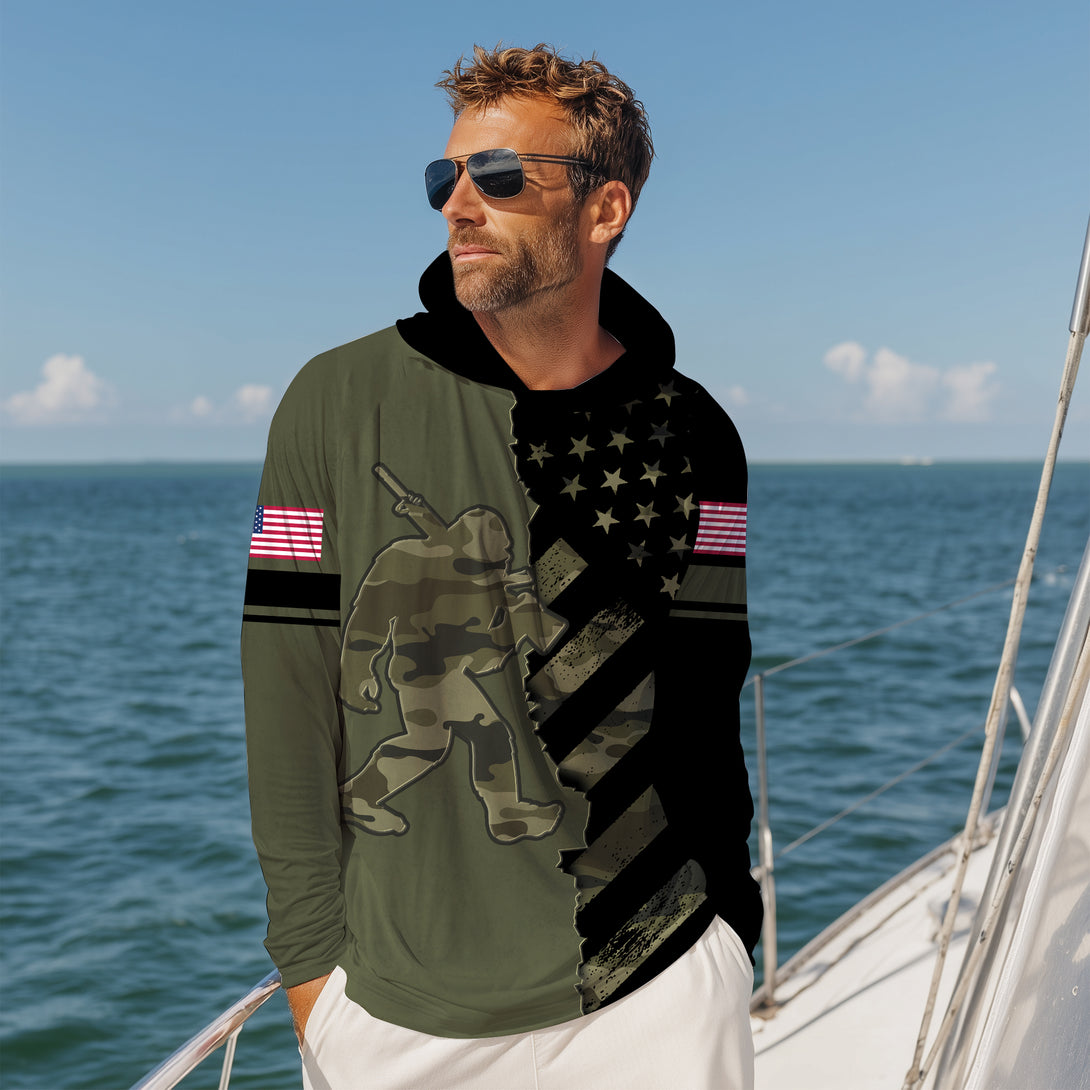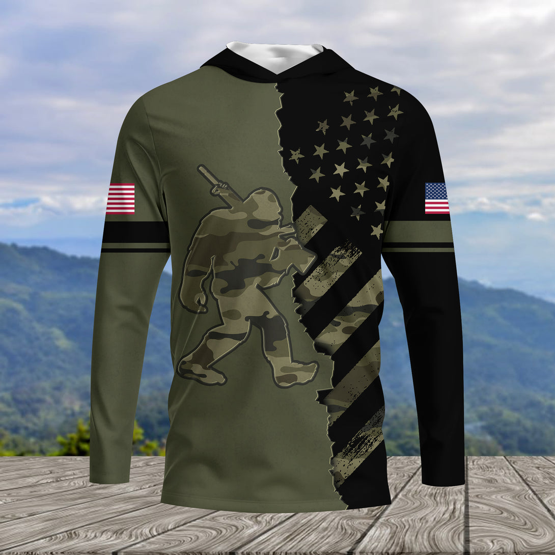 Bigfoot America Camouflage Long Sleeve Hooded Shirt