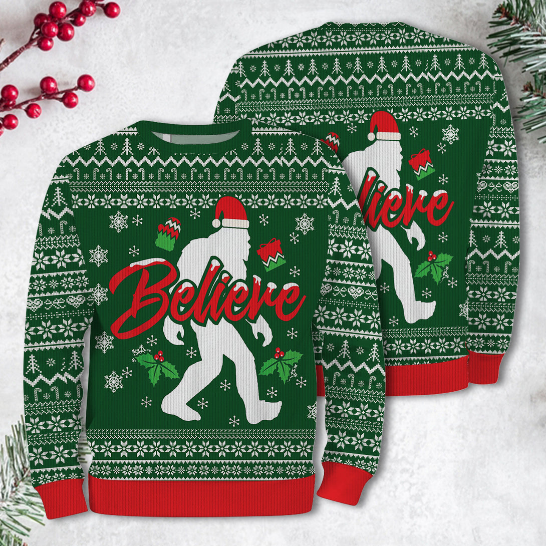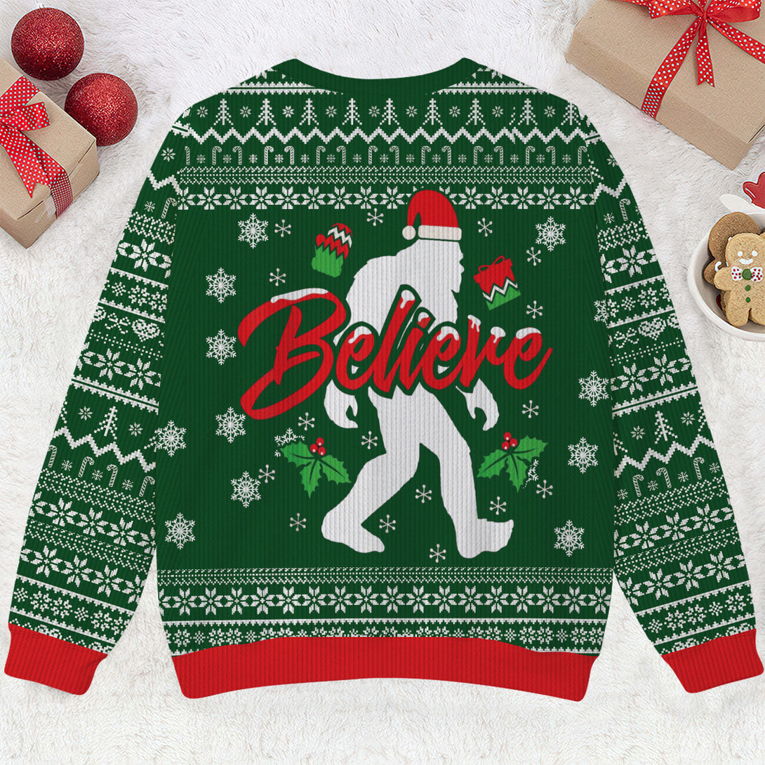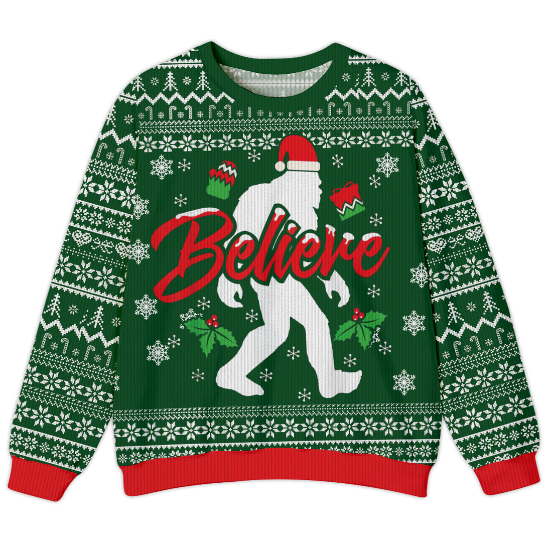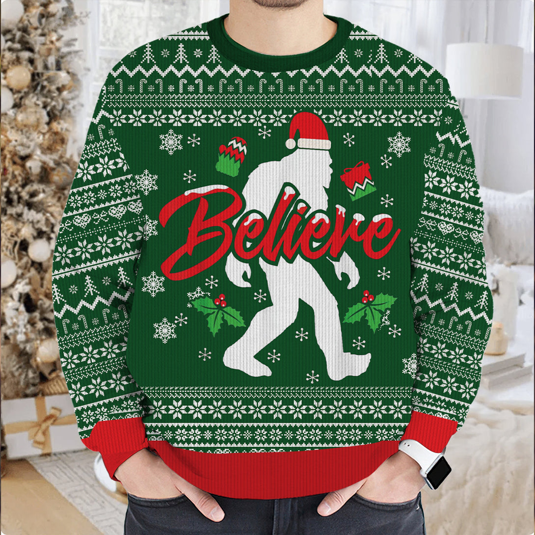Bigfoot Believe Red Ugly Sweater