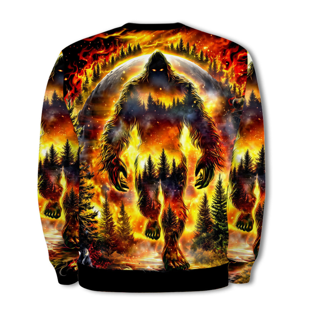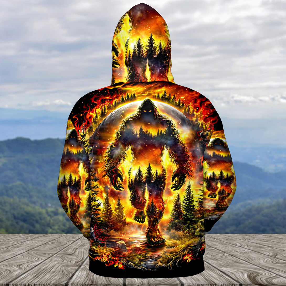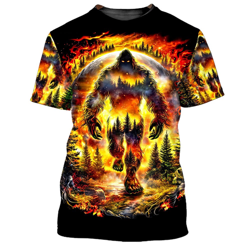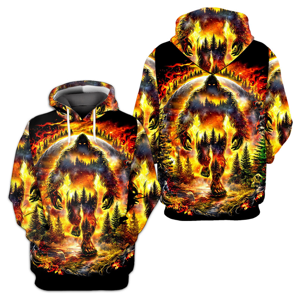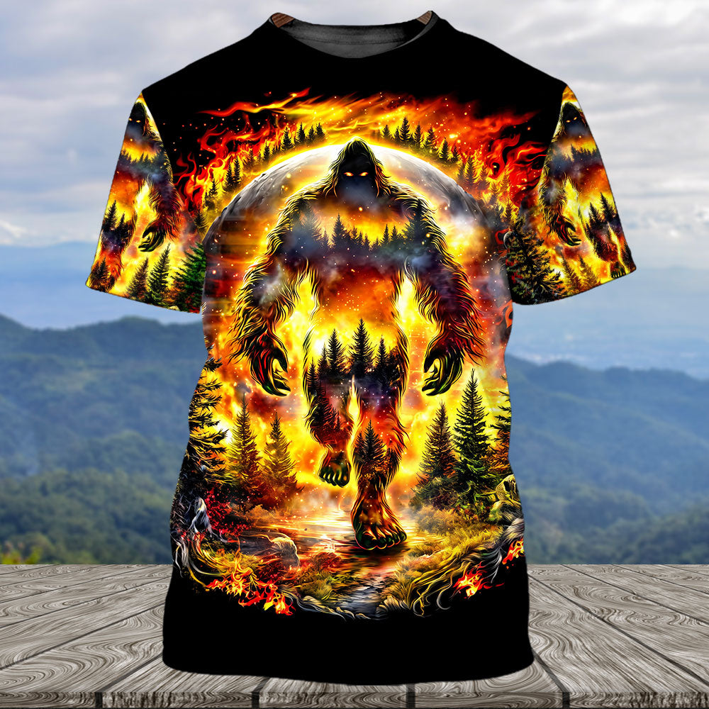 Bigfoot In The Forest Fiery All Over Print Shirt