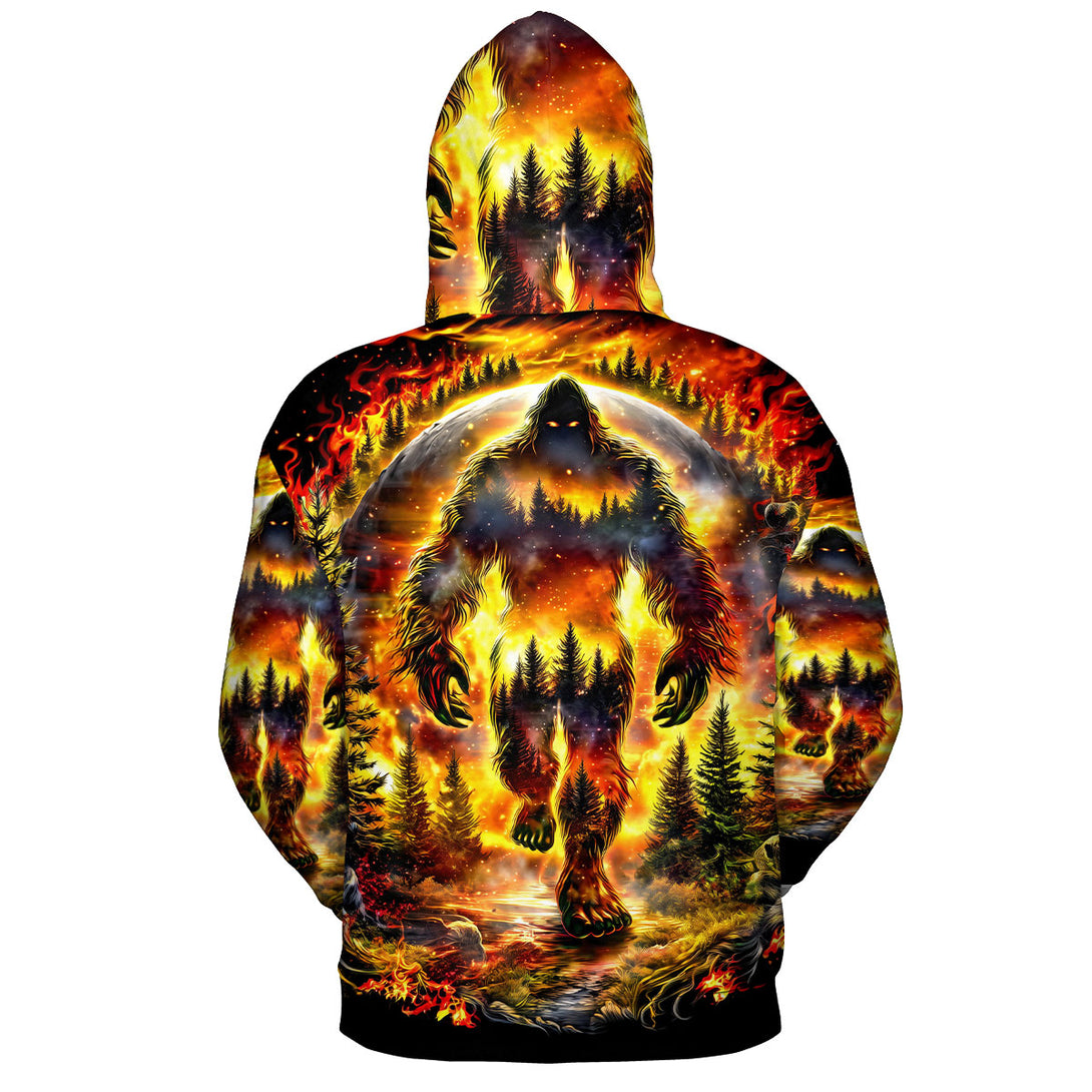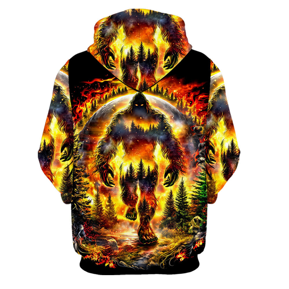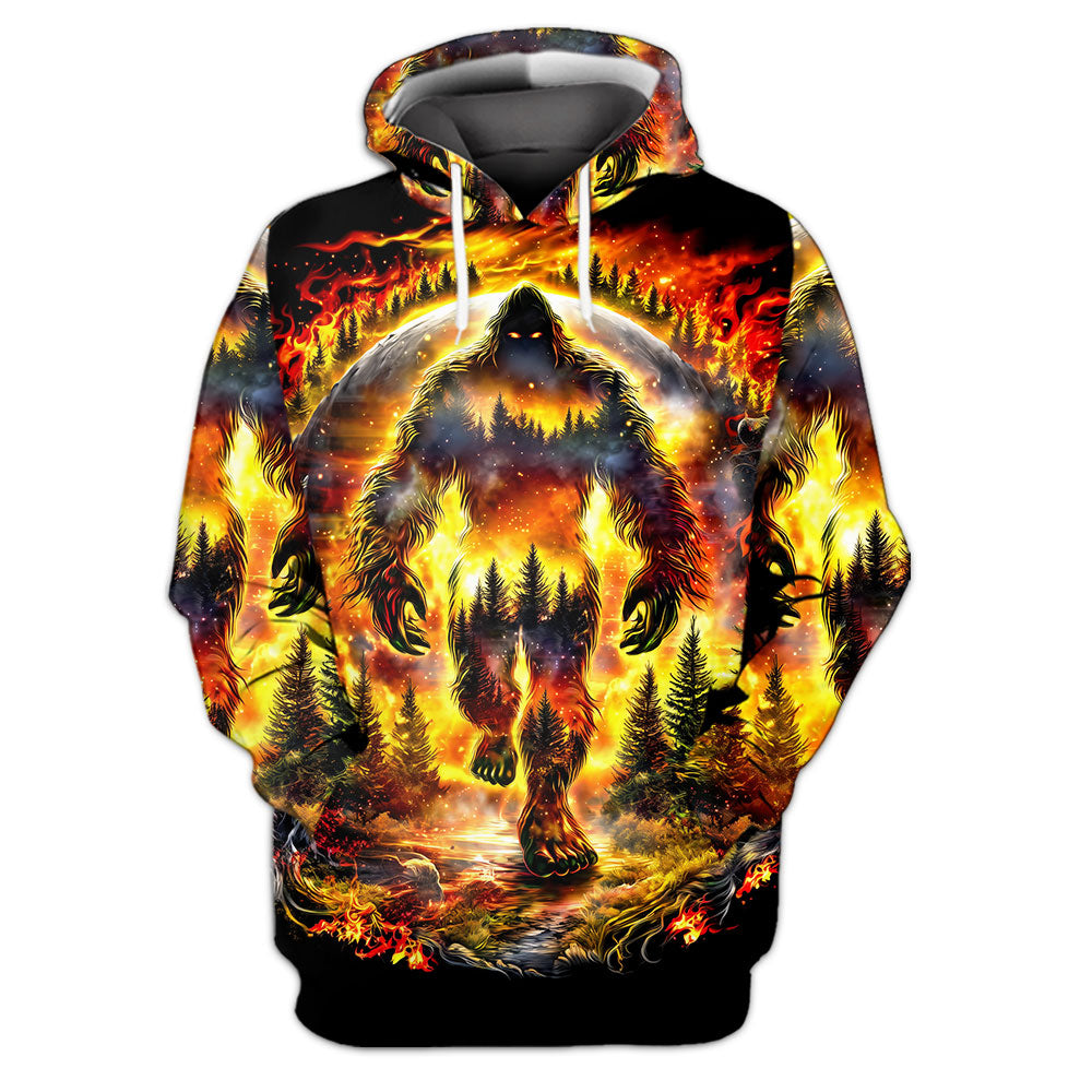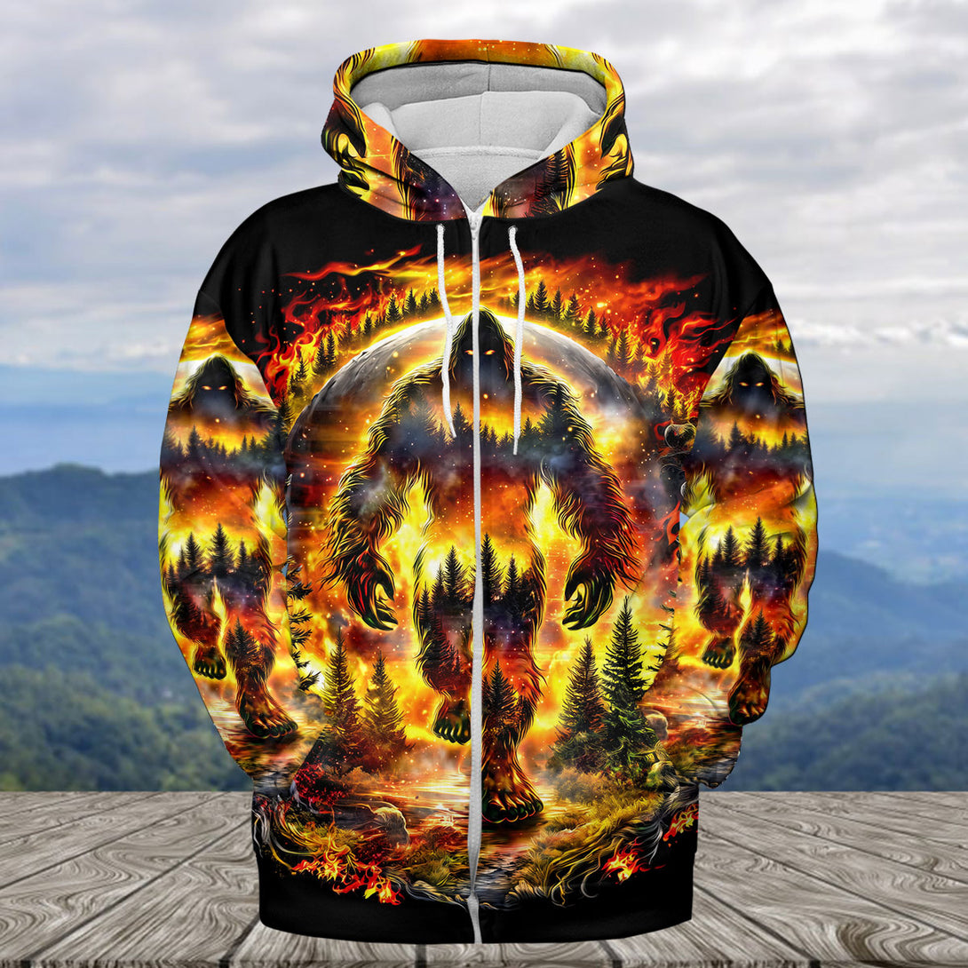 Bigfoot In The Forest Fiery All Over Print Shirt