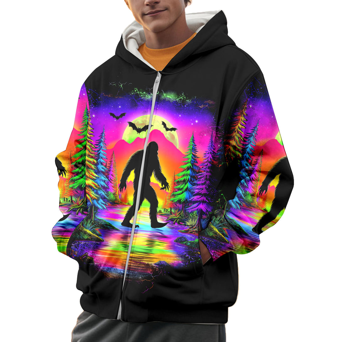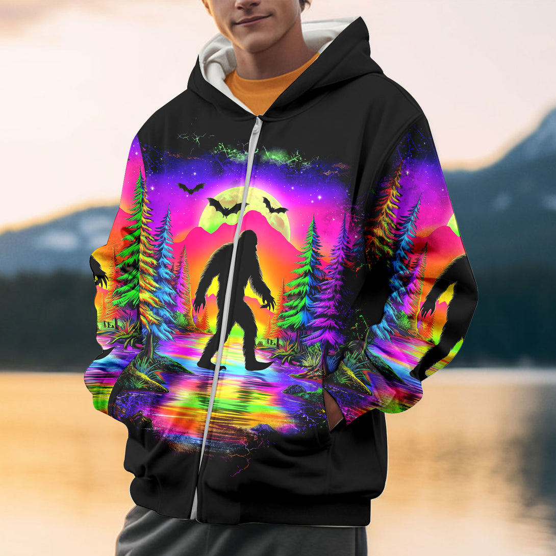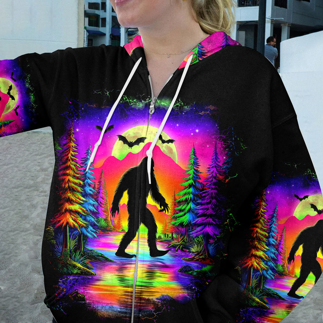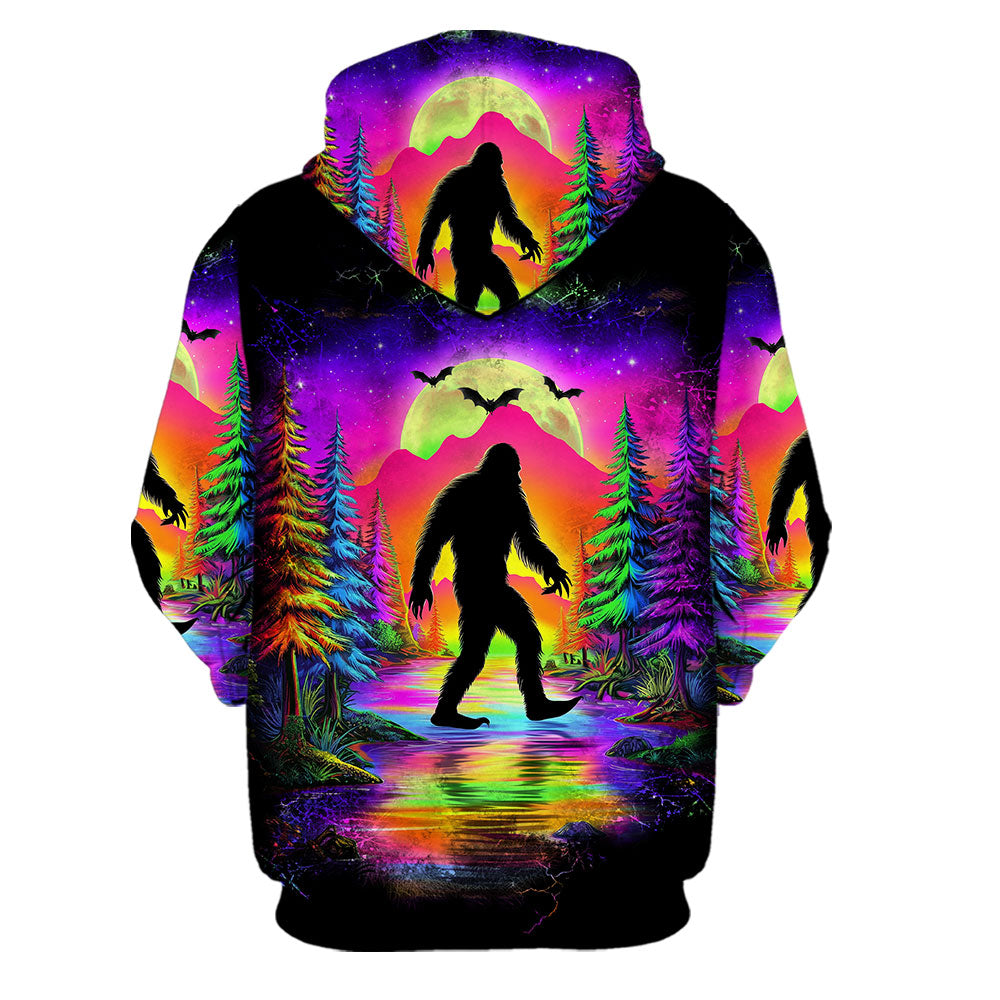 Bigfoot Walking Along The Riverbank In A Moonlight Forest All Over Print Shirt