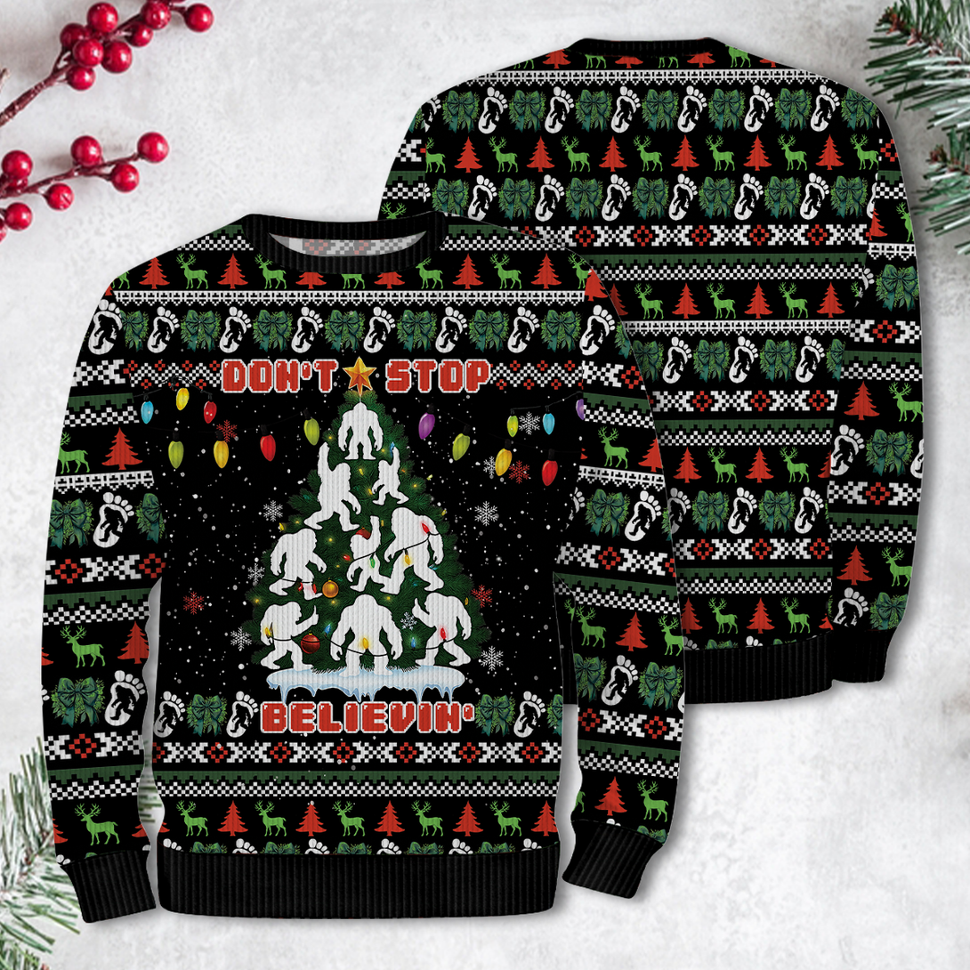 Funny Bigfoot Christmas Tree Ugly Sweater