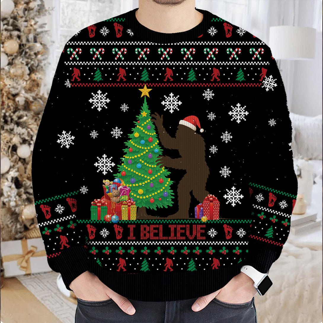 Bigfoot Ugly Sweater – the perfect blend of cozy holiday vibes and legendary style! This ugly sweater features favorite cryptid, decked out in festive flair. Made from soft, breathable fabric, it’s ideal for keeping warm while making a statement at your holiday gatherings, family photos, or ugly sweater parties.